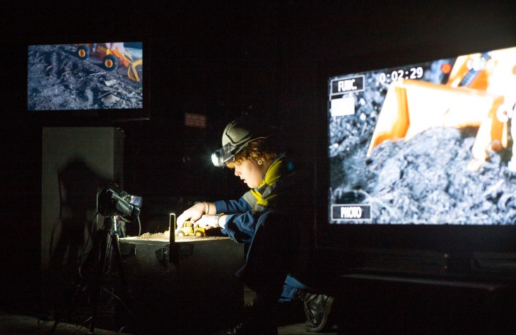 In Hydraulic Fucking, Cheryn Frost takes a wildly different approach to interpreting climate change and calling for action. In an elaborate masturbation ritual, a man constructs a miniature oil-drilling site for a part-stop motion, part-porno video he shoots from two angles before drilling a hole in the centre for him to insert his penis into repeatedly. This simultaneously crass and delicate scenario laboriously sets up Frost’s extended metaphor about the coal, gas, and oil industries’ extraction of resources representing rape of “our Mother [Earth]”.