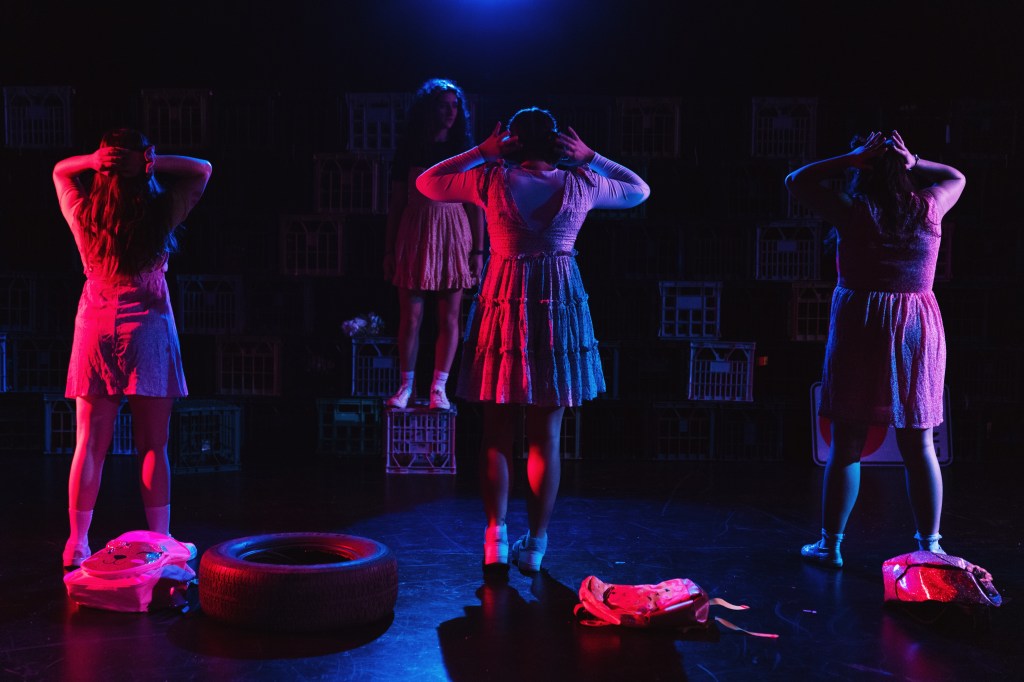 For the following production, the tone takes a turn towards satire with a dark new take on the refugee crisis from Gita Bezard. Four average teen girls spend their days studying, hanging around, and talking about boys and clothes. Except these girls also live in a war zone so, despite their frilly floral dresses and glitter backpacks, their future is bleak. When Katie (Kobi Taylor-Forder) gets shot and survives, suddenly she has an escape, a temptation the other girls can’t resist.
