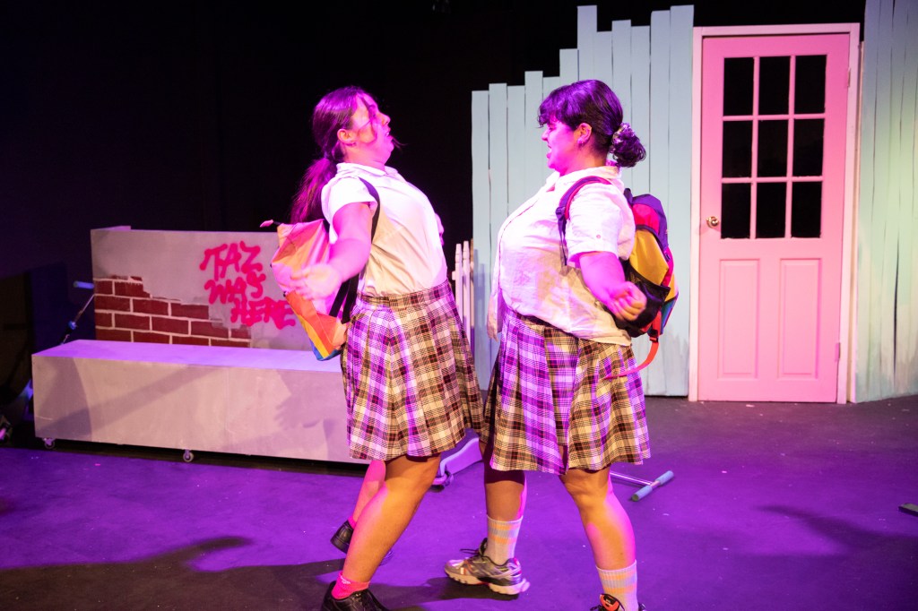 Caro and Strykowski as the central teens were boisterous, funny, and engaging with a genuine friendly camaraderie. Strykowski’s Shontelle had the typical obliviousness of the best sidekicks but her loyalty was endearing. Caro as Taz was drier for their more determined personality but with excellent comic timing that complimented Strykowski well. All of the other characters including Taz’s mum Cathy, the nosy neighbour Lynda, the postie, the school bullies, the Neighbourhood Watch, and Suzy who ran the Milk Bar were shared impressively between Jack Mainsbridge and Lou McInnes. These two added wonderful colour to the town for their varied and detailed depictions of local personalities. McInnes’s Suzy with her Dykes on Bikes connections and Mainsbridge’s spot-on elderly postie Glenda were particular crowd favourites but the story wouldn’t have been complete without the charming co-conspiring of Cathy and the head of the Neighbourhood Watch. Despite some stumbling and misunderstanding, the town comes to rally around Taz, revealing another side of rural life that they hadn’t been privy to before.