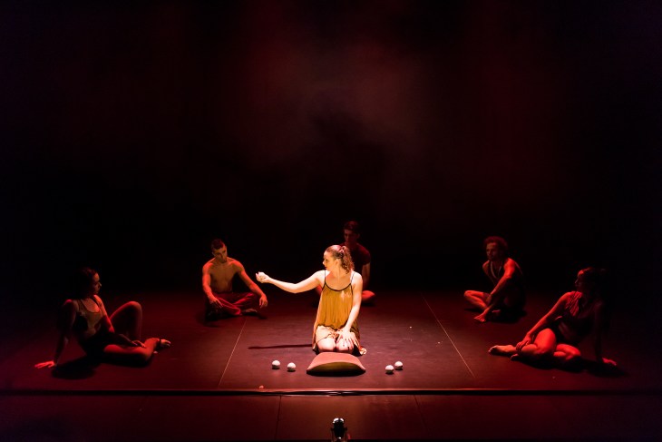 Ushered into an intimate tent past two open fires, the audience are greeted by a mock anthropological “Aborigine” scene. The sarcastic narration quickly sets the scene for Chasing Smoke’s playful tongue-in-cheek tone. Combining circus, dance, and a bit of comedy, this production from Australia’s only entirely Indigenous circus group is a celebration of identity and story-telling.